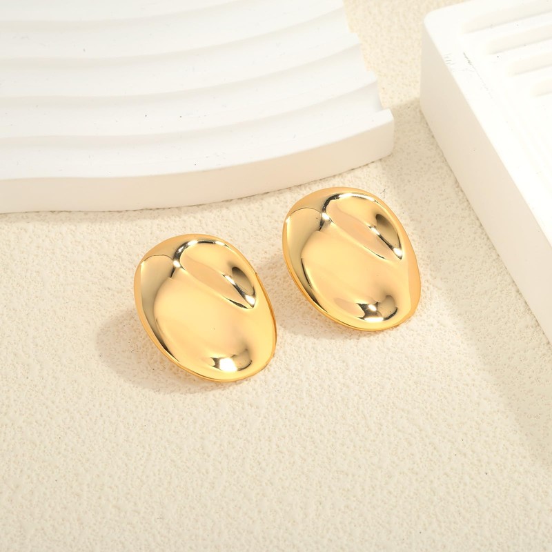 - Geometric Oval Earrings: These polished gold chunky stud earrings feature a sleek geometric oval design that adds a touch of sophistication to any outfit.