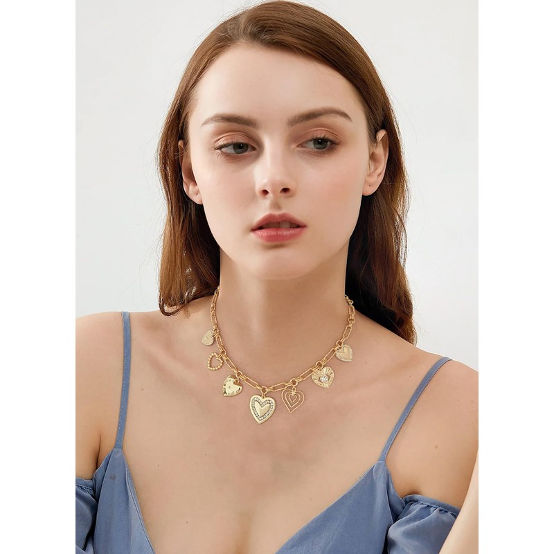 - Multi-heart Charm Necklace: This gold heart necklace features 7 heart-shaped pendants, each symbolizing love, affection, and elegance. Its intricate details are perfect for adding a touch of charm and sophistication to any outfit.