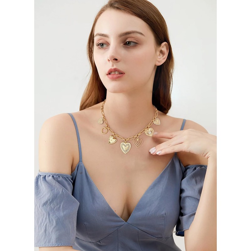 - Service and Guarantee: ENSKEFEN chunky gold heart charm necklaces for women have been quality inspected, If you have any questions, please contact us. Wish you a pleasant shopping experience. Thank you for your love of our products!
