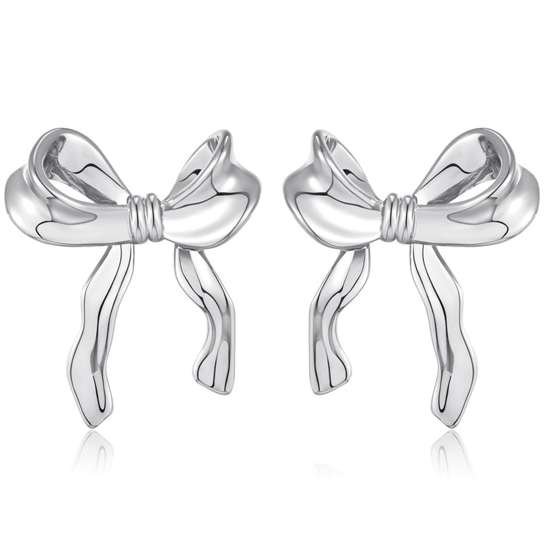 ENSKEFEN Silver Ribbon Bow Stud Earrings for Women Cute Ribbon Bow Earrings Classic Bowknot Earrings Birthday Party Fashion Jewelry