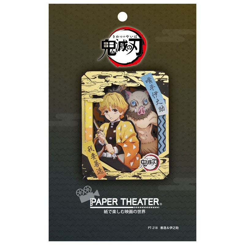 - This Paper Theater features Zenitsu and Inosuke with their names written in kanji on scrolls and their iconic patterns