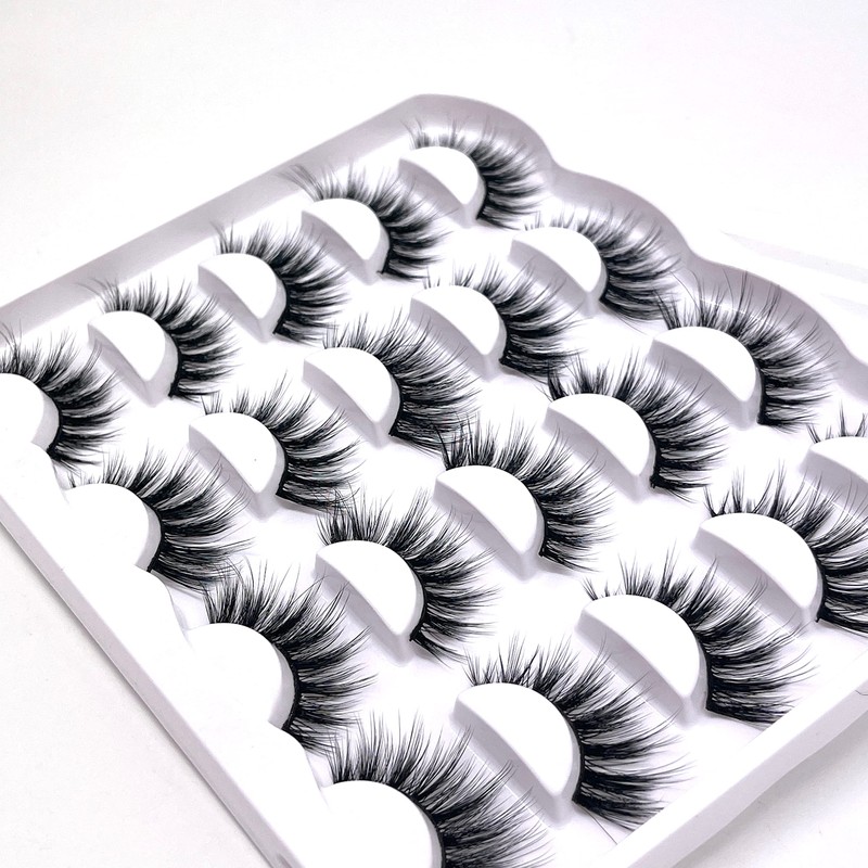 ENSMER False Eyelashes 10 Pairs Professional Reusable 3D Faux Mink Eyelashes Natural Waterproof Fake Eye lashes (A9)