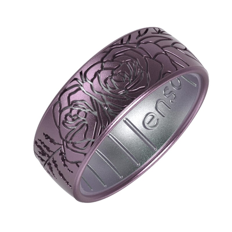 Enso Rings Etched Classic Silicone Rings - Comfortable and Flexible Design - Sugar Plum - Soft Plum/Icy Silver - Size 7