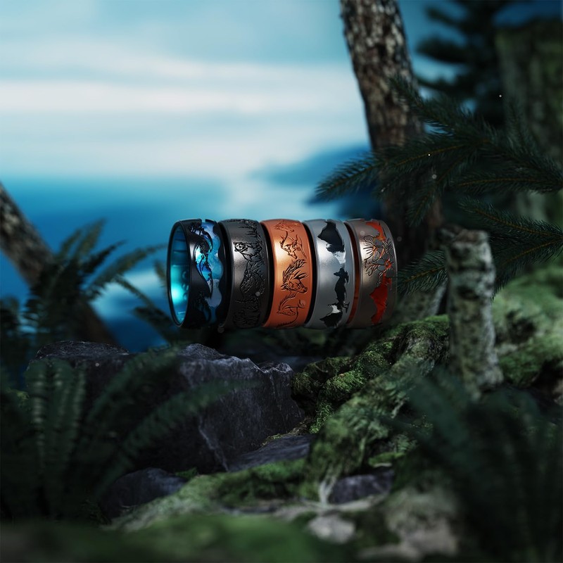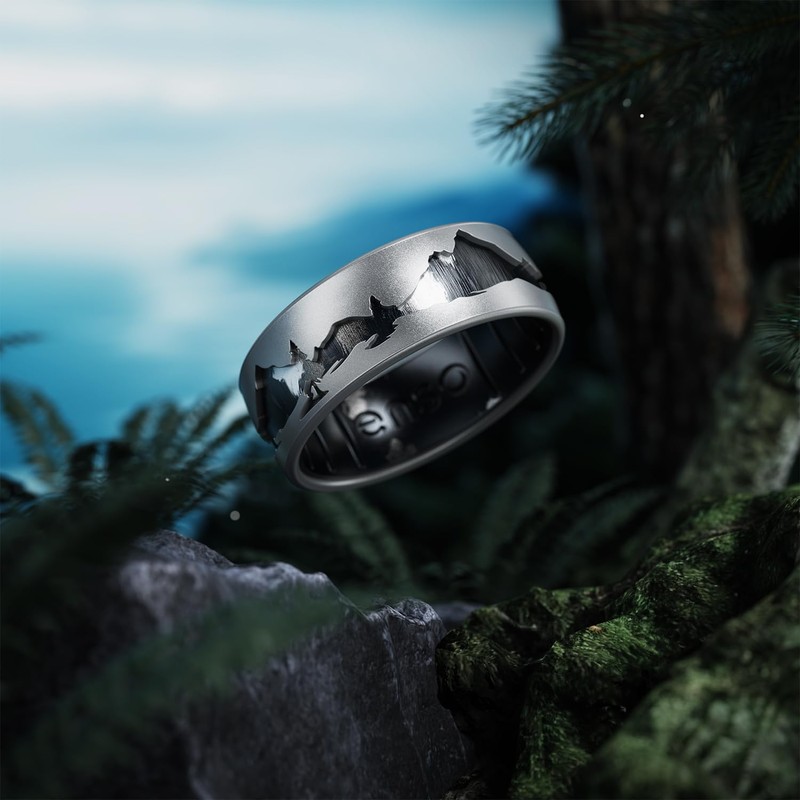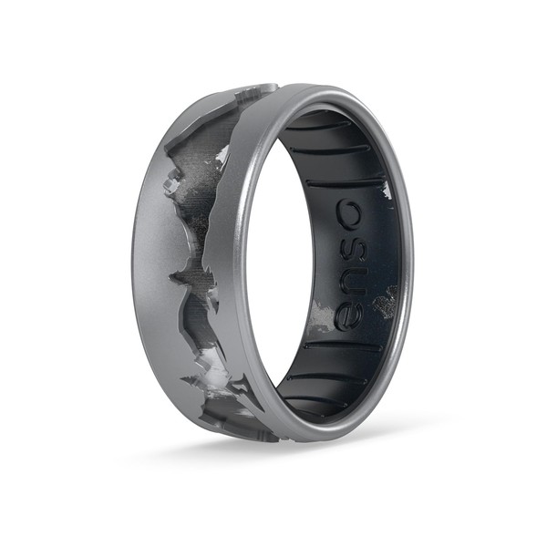 Enso Rings Etched Classic Silicone Rings - Etched Nature Collection - Comfortable and Flexible Design - Summit - Silver/Galaxy - Size 9