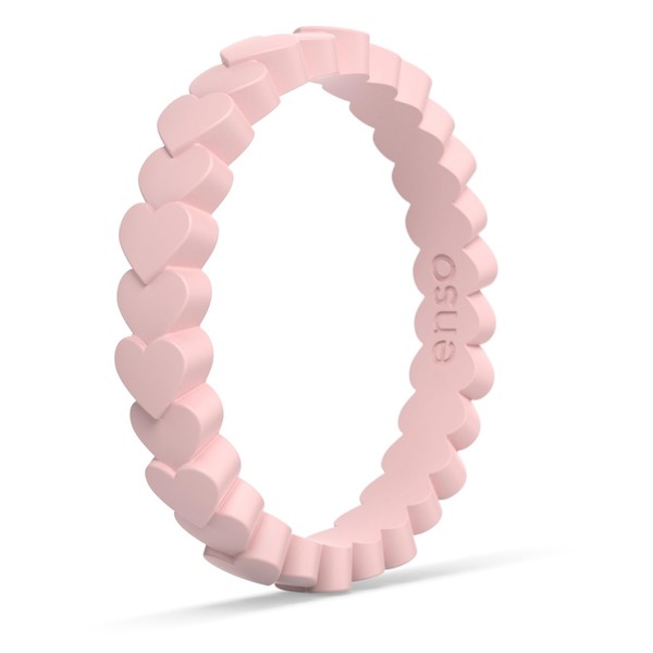 Enso Rings Stackable Beaded Silicone Wedding Ring – Hypoallergenic Unisex Stackable Wedding Band – Comfortable Minimalist Band – Heart-Pink Sand (Heart)-Size 7