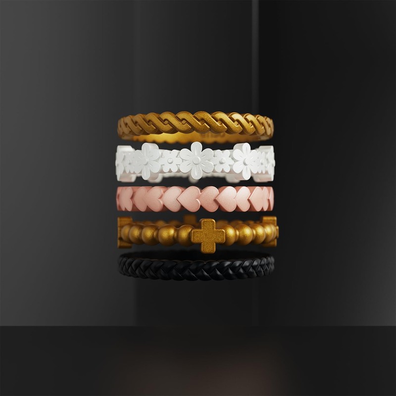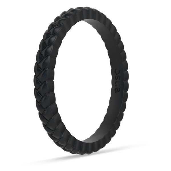 Enso Rings Stackable Weaved Silicone Wedding Ring – Hypoallergenic Unisex Stackable Wedding Band – Comfortable Minimalist Band – Weave-Metallic Black (Weave)-Size 5