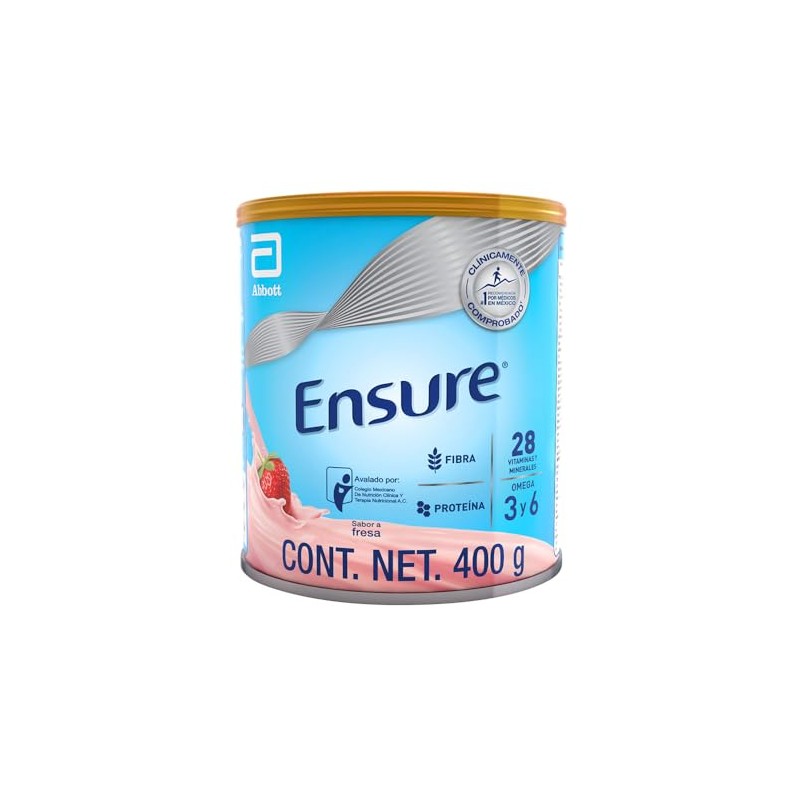 Ensure Clsico - en Polvo Sabor Fresa, 400g, Alimentacin Especializada con Vitaminas, Protenas y Prebiticos, Clnicamente Probado