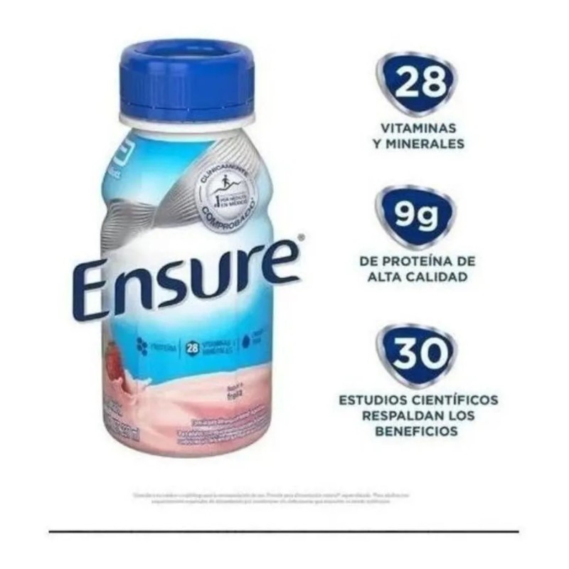 El Ensure Fresa está cargado de ingredientes esenciales como minerales, Omega 3 y 6, proteínas y vitaminas, que contribuyen a mantener tu cuerpo saludable y enérgico. Es parte de la línea Ensure, conocida por sus productos de alta calidad y eficacia.