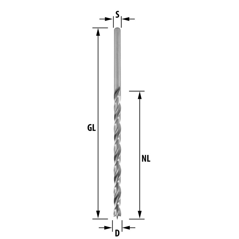 Thanks to the production with ground spiral and cylindrical shaft, the ENT wood twist drill impresses with its high-quality finish. It is suitable for drilling holes in hard and soft wood, glued woods and coated boards, as well as in MDF and acrylic glass. The special cutting edge geometry ensures clean cutting of the wood fibres before drilling. The centring tip guarantees precise drilling without "running" of the drill. The result: good chip ejection, circular, dimensionally stable holes and a clean hole edge quality.