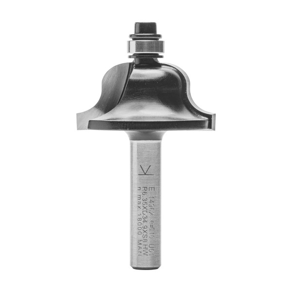 ENT Roman Ogee Cutter TC Shank (C) 8 mm, Diameter (A) 34,9 mm, B 16,6 mm, R 6,35 mm, D 32 mm, with Ball Bearing