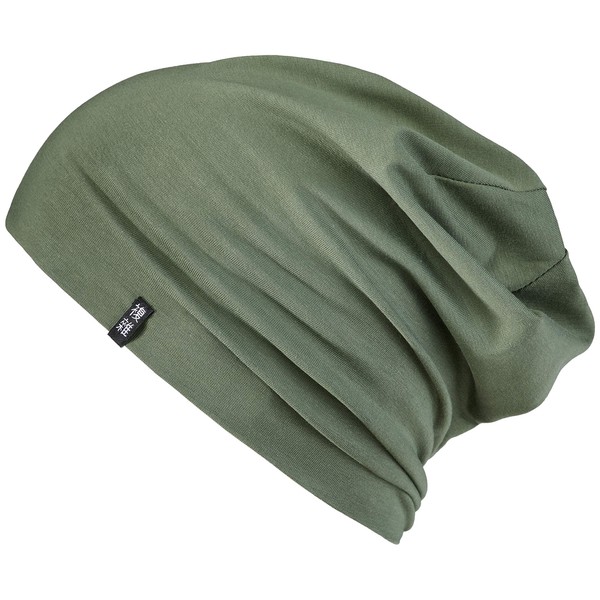 Enter the Complex® Unisex Lightweight Jersey Beanie Hat, Slouch Beanie Made of Cotton, Elastic - Mossy Olive, size: L-XL