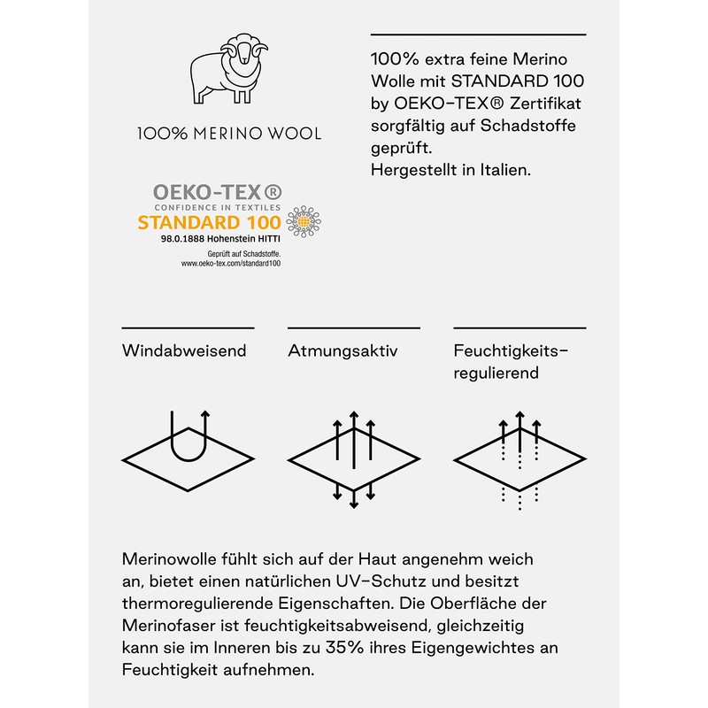 - 100% extra fine merino wool with Standard 100 by Oeko-Tex certificate; fair trade and made in Italy