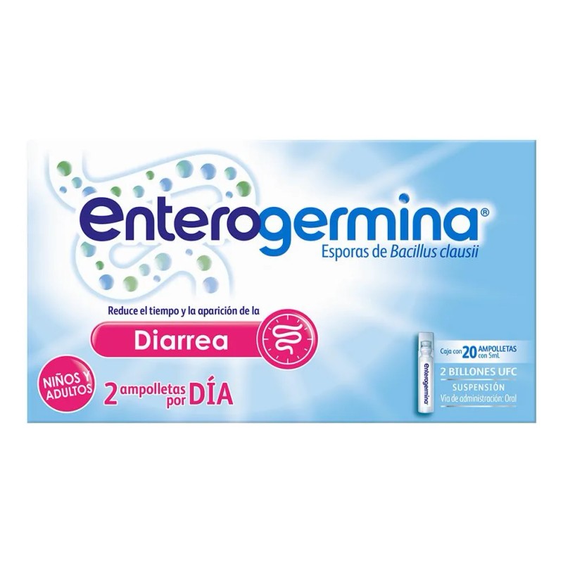 Enterogermina Suspensión de Bacillus Clausii con 2 Billones de UFC 20 Ampolletas de 5 ml. Alivia la Diarrea, Restaura y Protege para Niños y Adultos