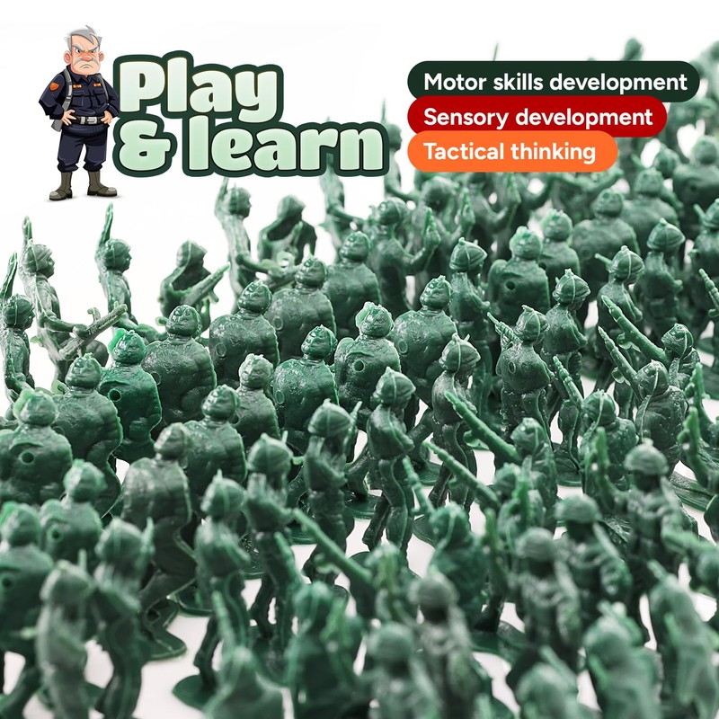 - THRILLING ARMY GAMES: Experience thrilling army games and imaginative play scenarios with these high-quality army men action figures, providing endless entertainment for kids of all ages. Take birthday parties to the next level by incorporating army-themed decorations featuring these toy soldiers for boys