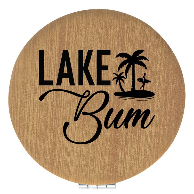 Enthoozies Lake Bum Tan 2.5" Diameter Laser Engraved Leatherette Compact Mirror