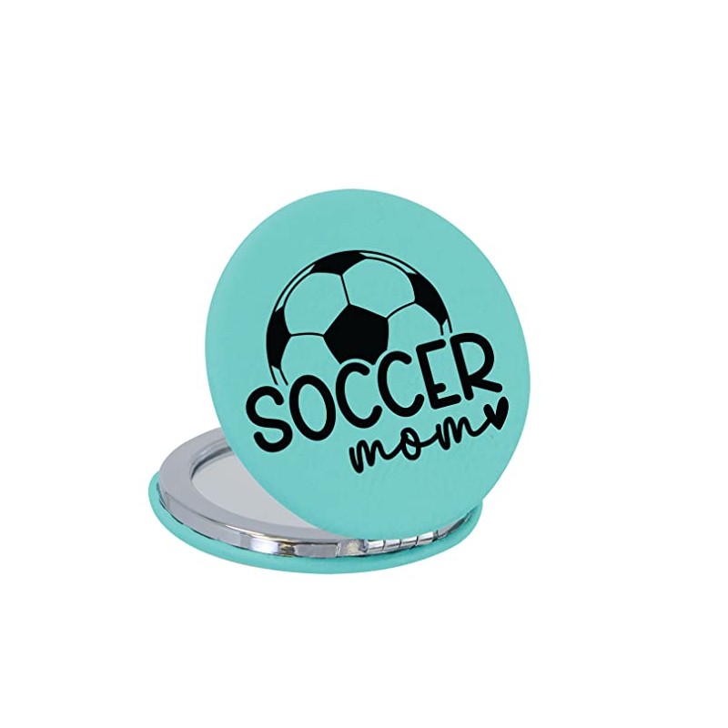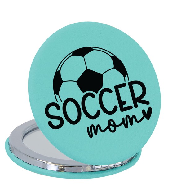 Enthoozies Soccer Mom Teal Laser Engraved Leatherette Compact Mirror - Stylish and Practical Portable Makeup Mirror - 2.5 Inch Diameter