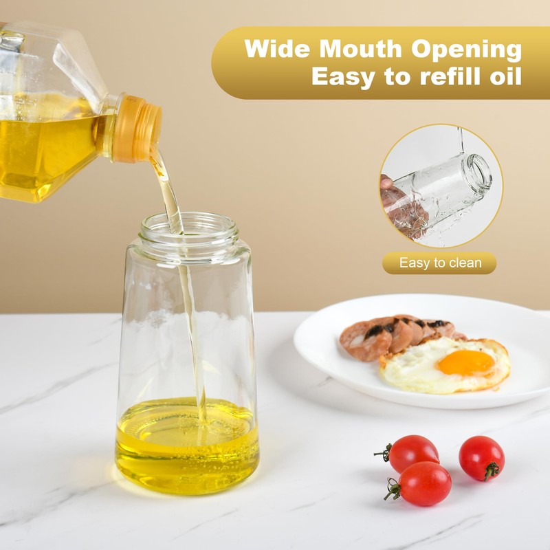 - 【Große Kapazität und einfach zu bedienen】 - Die 600 ml bieten ein großes Fassungsvermögen, das den täglichen Kochbedürfnissen für eine lange Zeit gerecht wird und die Häufigkeit des Tankens reduziert. Die breite Öffnung erleichtert das Hinzufügen von Öl und die Reinigung der Flasche manuell oder in der Spülmaschine, da sie wiederverwendbar ist.