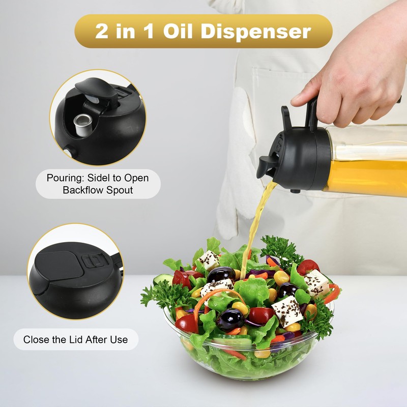 EnthuLove 2 in 1 Sprüher und Dosierer, 600 ml Ölsprüher für Luftfritteuse, Küchenölspray zum Kochen, Küchenutensil, multifunktionales Ölspray (schwarz)
