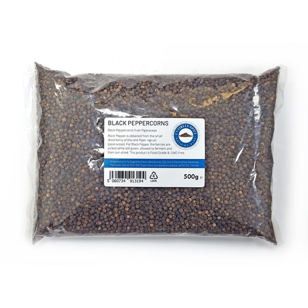Entirely Ingredients Black Peppercorns 500g - Selected for Quality - Food Grade