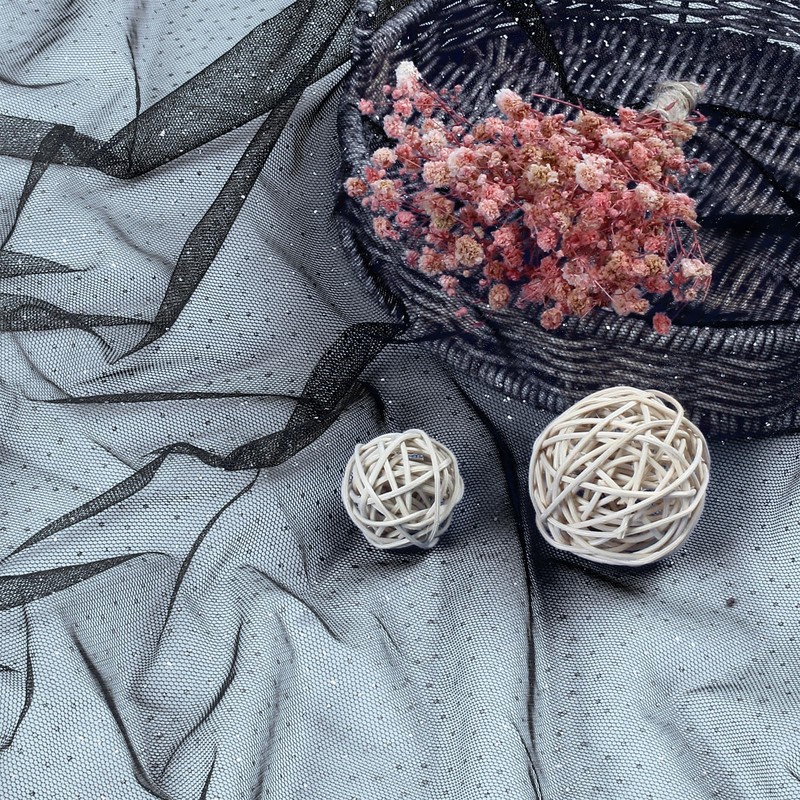 Entisn Glitter Tulle Fabric, 1 Yard x 60 Inch Wide Tulle Bolt Black Tulle Netting with Silver Sequin, Soft Sparkly Tulle Fabric Bulk for Bridal Veil Wedding Decoration Tutu Skirt Gift Wrap