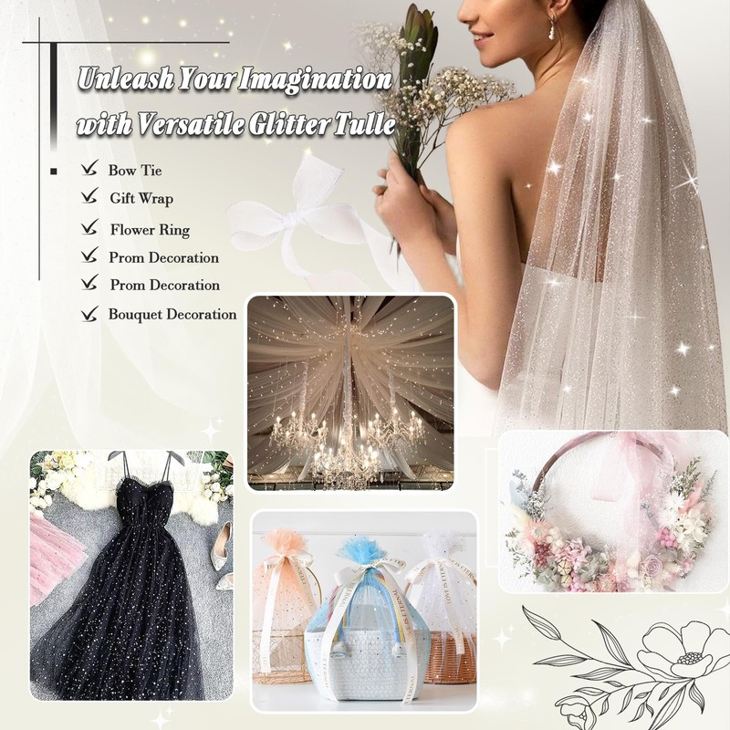 - Multi functional: These sparkle tulle netting fabric are suitable for a wide variety of scenarios. Whether for weddings, birthday parties, graduation ceremonies, banquets or as decorations for various festivals, they can play an indispensable role