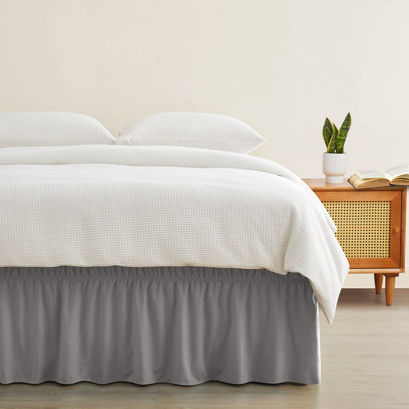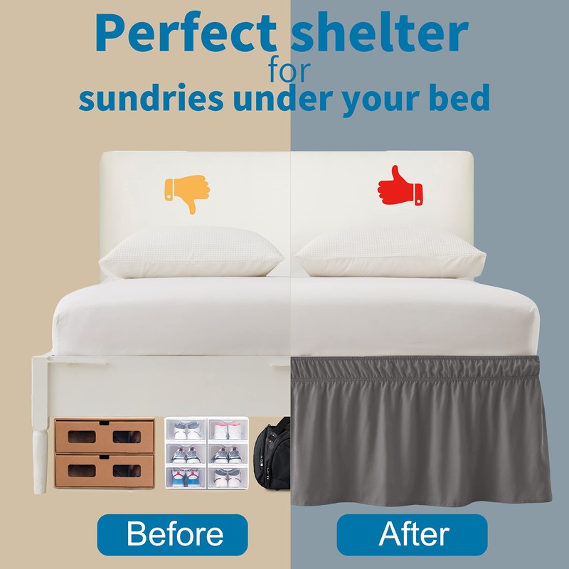 - EXQUISITE STYLE EFFORTLESS RECEIVE -- You can put on and take off your elastic wrap-around bed skirt effortlessly, adding graceful and exquisite style to your bedroom. Don't struggle to lift the whole mattress to replace the bed skirt! Spend less time changing the bed skirt and simplify your life.