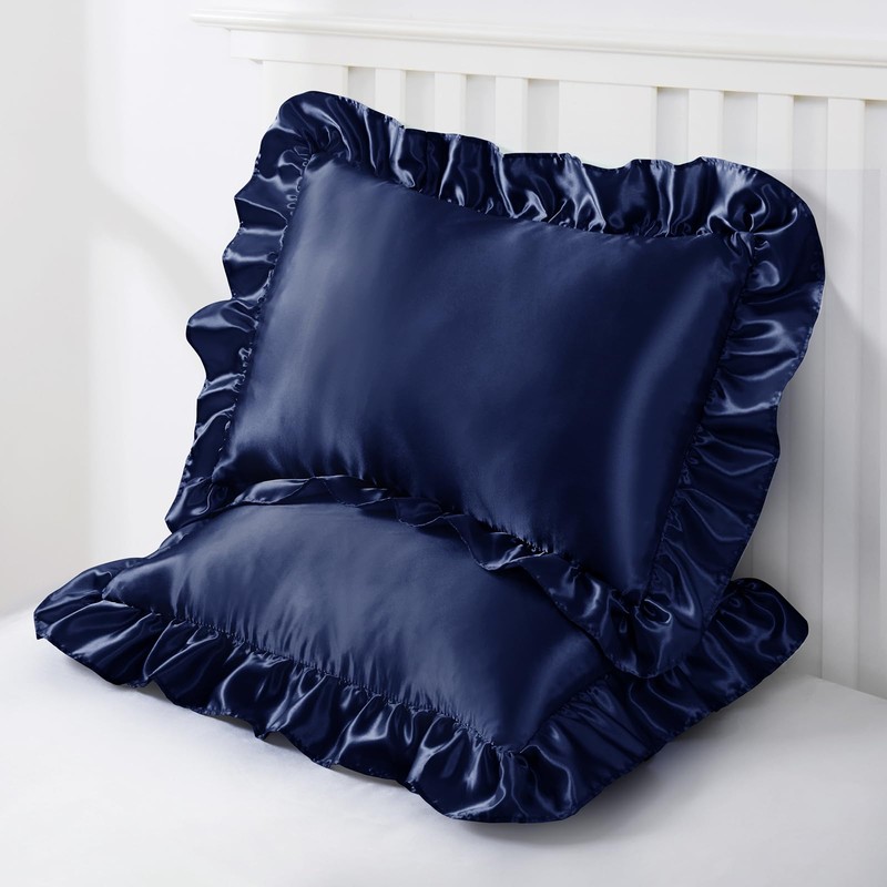 Entisn Ruffle Satin Toddler Pillowcase Set of 2, 13 x 18 Inch Toddler Silky Pillow Covers with Envelope Closure, Anti Wrinkle Soft Travel Pillow Case Nursery Pillow Sham for Girls, Boys (Navy Blue)