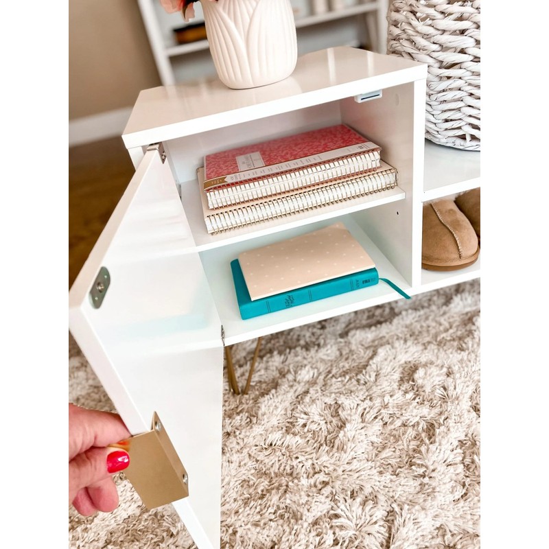 - Modern Aesthetics Elevating Your Space: Simple lines, complemented by gold metal handles and sleek cabinet legs, create an inviting atmosphere in your home. Organize in style with the efficient door cabinet design, adding a touch of pleasing beauty to your space.