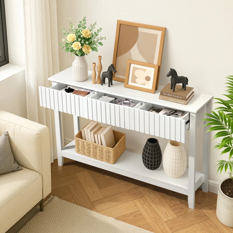 Entryway Table with 2 Fluted Drawers and Shelf Modern Sofa Table Hallway White