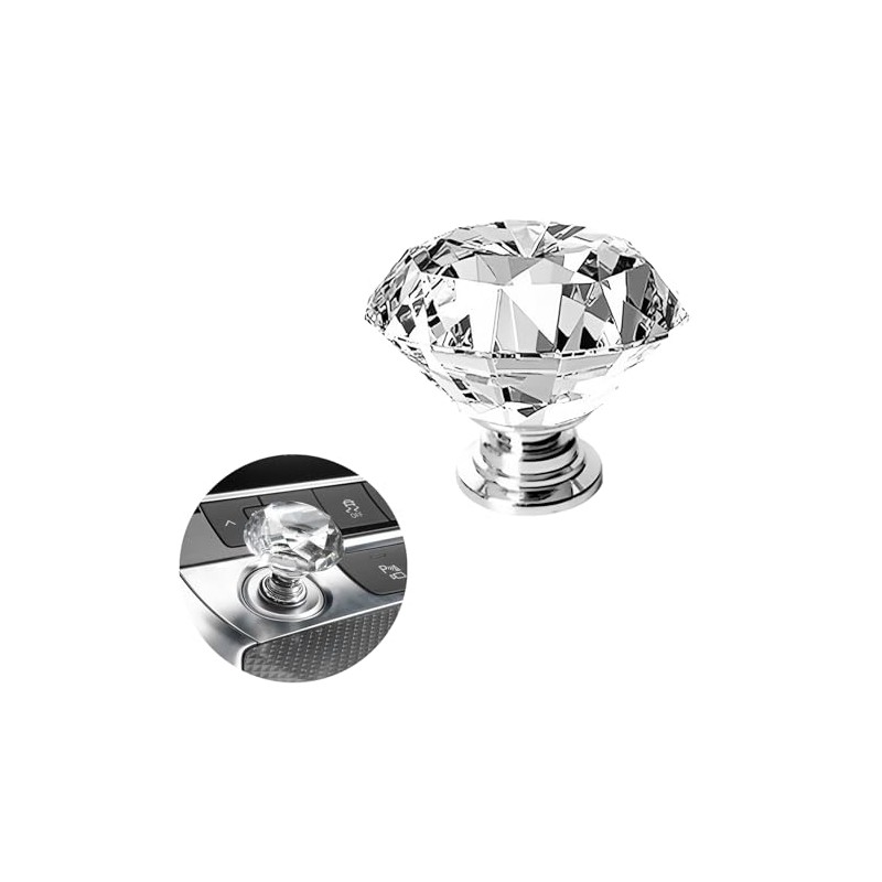 enttgo Car One-Touch Start Button with Push-to-Start Rocker Lever, Engine Start/Stop Joystick, and Full Metal Ball-bar Starter Cover for Decorative Accessories (Diamond - Transparent)