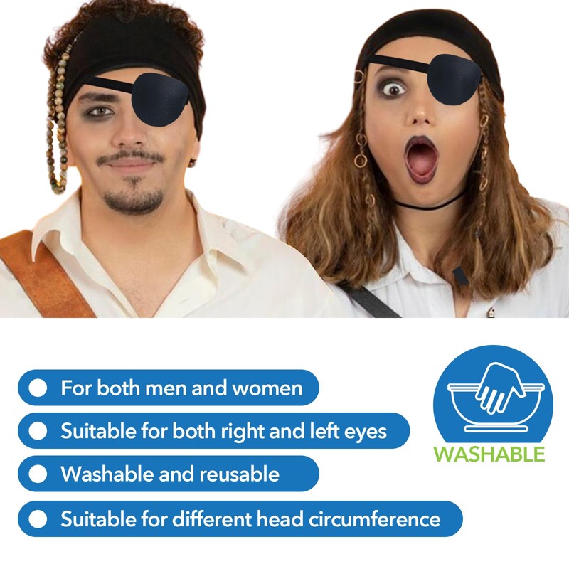 - Easy to Use: The pirate eye mask is easy to take off and put on, suitable for both left and right eyes, can also be used under glasses, can be washed with water, and can be reused