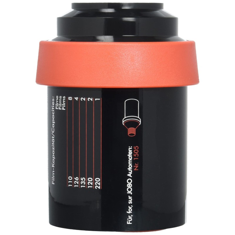 Entwicklungstank der Marke Jobo Uni Tank, Entwicklungstank mit Einer Spirale, geeignet für 1 KB- oder 120er-Film, Hartplastik, für Fotografen, Filmentwicklung, Hardcase, schwarz/orange