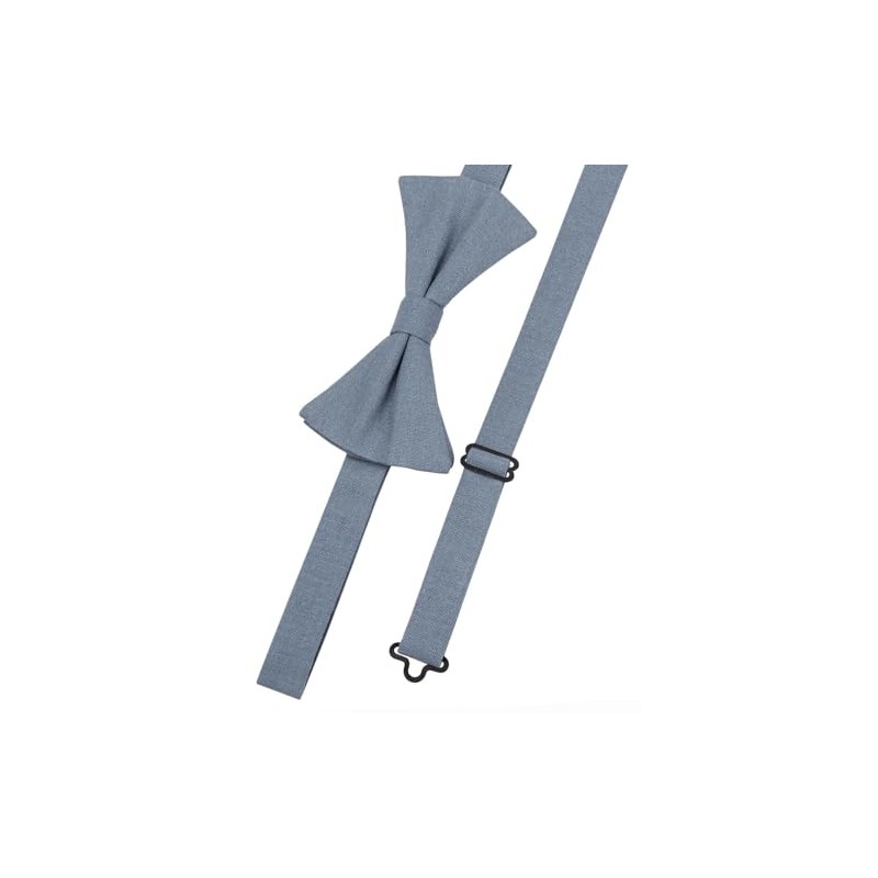 Entwineno Linen Bow Ties for Men and Kids - Solid Color Pretied Bowties, Slate Blue, L ( Youth, Adult )