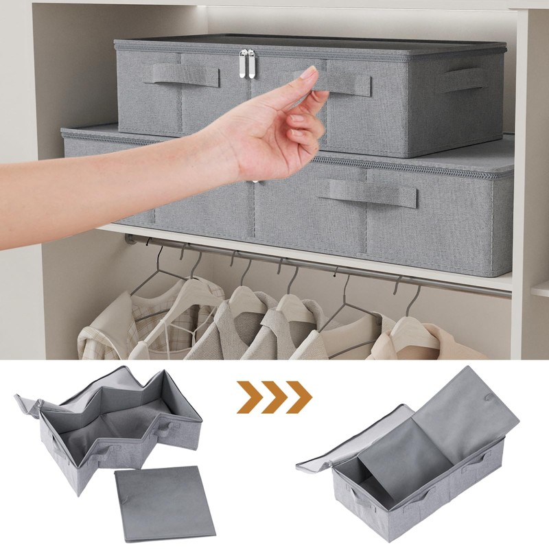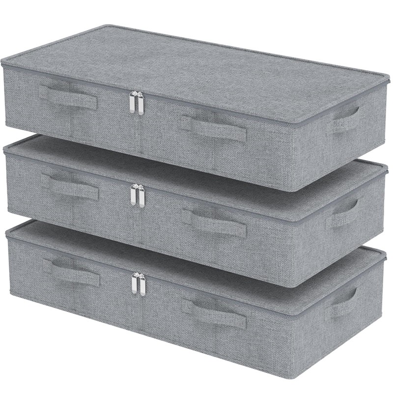 ENUMAIL Underbed Storage Bins, Foldable Under Bed Blankets Container, Organizer Baskets with Lid for Organizing Clothes, Sheets, Pillows, Comforter, 31.4x15.7x5.9in, Grey, 3 Pack