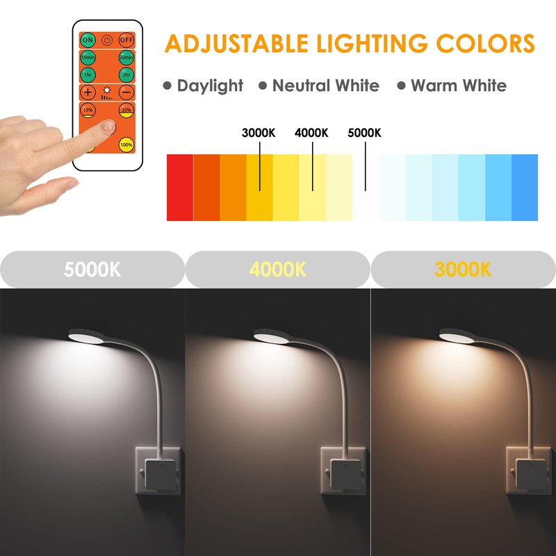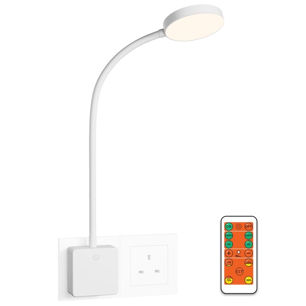ENUOTEK LED Wall Lamp Socket Bedroom Lamp Reading Lamp Bed Bedside Lamp Dimmable with Plug and Remote Control 4 W 280 lm 3000 K - 4000 K - 5000 K, 1 Lamp and 1 Remote Control (White)