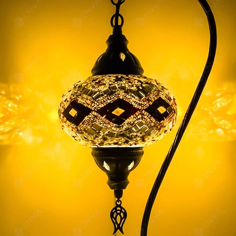 Enva Turkish Moroccan Lamp Colorful Glass Mosaic Handmade Swan Neck Table Lamp Large