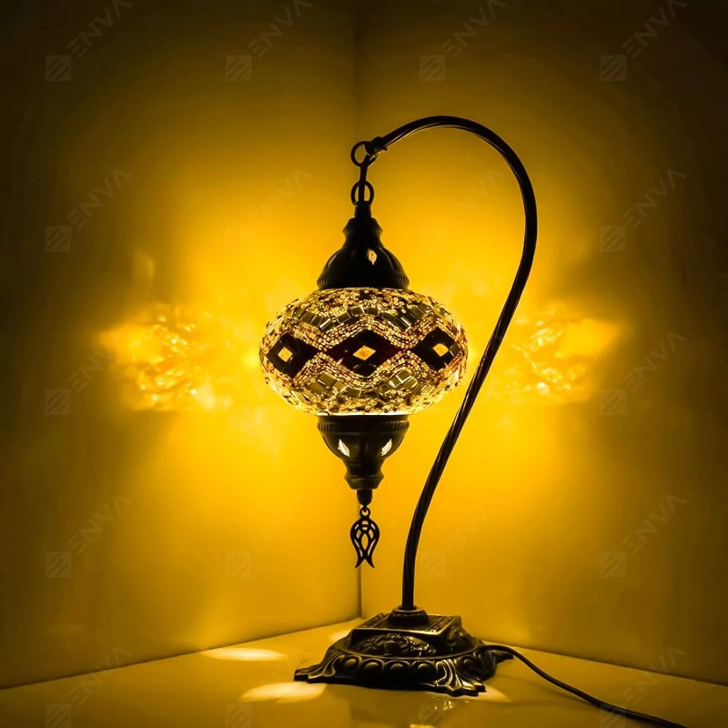 Enva Turkish Moroccan Lamp Colorful Glass Mosaic Handmade Swan Neck Table Lam...