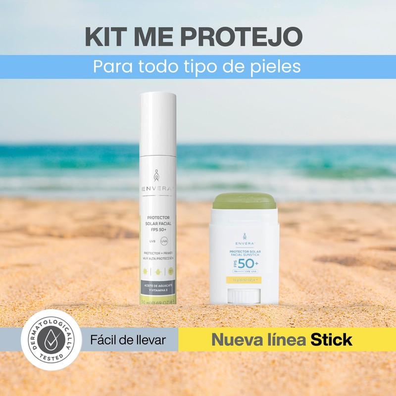 ENVERA | Kit "Reaplicándome": Protector Solar Facial PRIMER + Bloqueador en Barra Invisible FPS 50+ UVA/UVB, PA++++ | Skin care Vegano | Amigable con Océanos | Acabado Natural