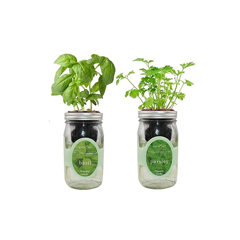 Environet 2-Pack Hydroponic Mason Jar Herb Garden Kit, Indoor Herb Garden Self-Watering Starter Kit (Basil, Parsley)