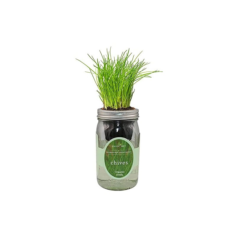 Environet Hydroponic Herb Growing Kit, Self-Watering Mason Jar Herb Garden Starter Kit Indoor, Grow Your Own Herbs from Organic Seeds (Chives)