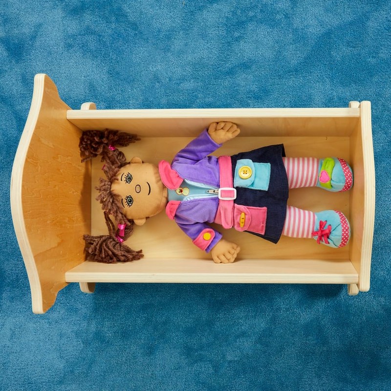 Environments Wooden Doll Cradle Play Furniture for Toddlers, Natural Finish, Fits up-to 22-Inch Doll, Educational Toy, Pretend Play