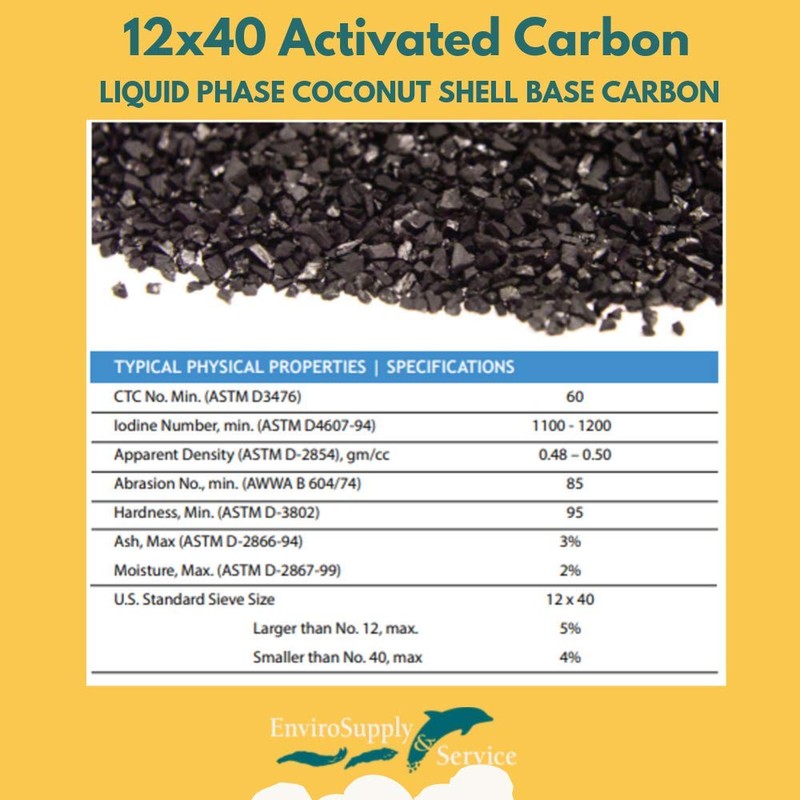 EnviroSupply 12x40 Ultra Pure Prewashed Virgin Coconut Shell Activated Carbon (Water Filtration, Aquarium Cleaning Charcoal) - Resealable 5 Pound Bag (80oz)