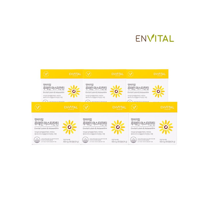 Envital [On Sale] Envital Lutein Astaxanthin 6 boxes (400mg x 60 capsules per box) Marigold Flower Vitamin A Absent Bilberry / 엔바이탈 [온세일]엔바이탈 루테인 아스타잔틴 6박스(박스당 400mg x 60캡슐) 마리골드꽃 비타민A 결명자 빌베리