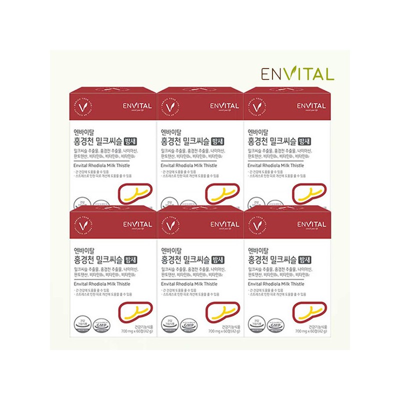 Envital [Onsale] Envital Rhodiola Rhodiola Milk Thistle Overnight 6 boxes (700mg x 60 tablets per box) Silymarin Hovenia Vitamin B / 엔바이탈 [온세일]엔바이탈 홍경천 밀크씨슬 밤새 6박스(박스당 700mg x 60정) 실리마린 헛개나무 비타민B