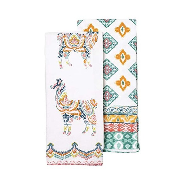 ENVOGUE Colorful Llama Medallions - Set of 2 Kitchen Hand Towels - 100% Cotton