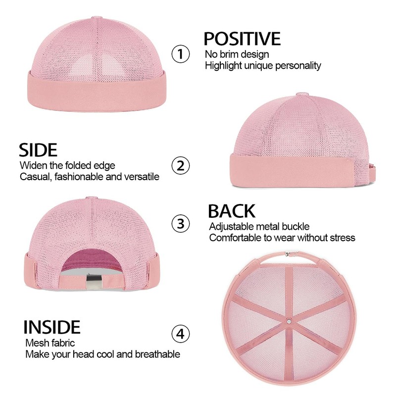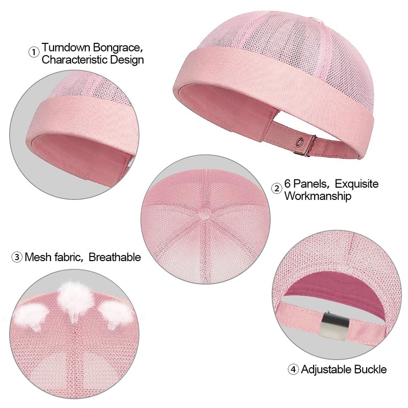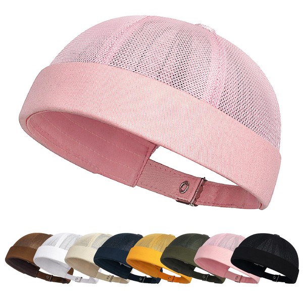 Enwokran Docker Cap Adjustable Sailor Hat UV Protection Docker Hat Summer Harbour Hat Fishing Hat Unisex Mesh Brimless Rolled Cuff Harbour Beanie Hat, pink