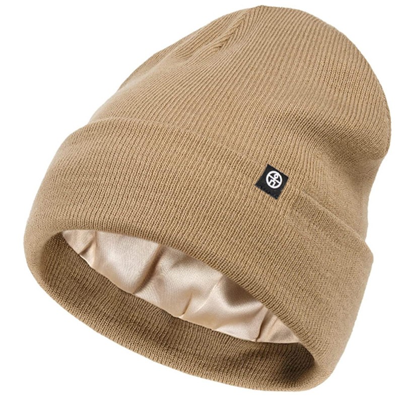 Enwokran Unisex Soft Feel Turn up Slouch Knit Beanie Hat Warm Fleece Lined Winter Hat for Cold Wet Weather, Windproof & Warm & Stretchy (Khaki)