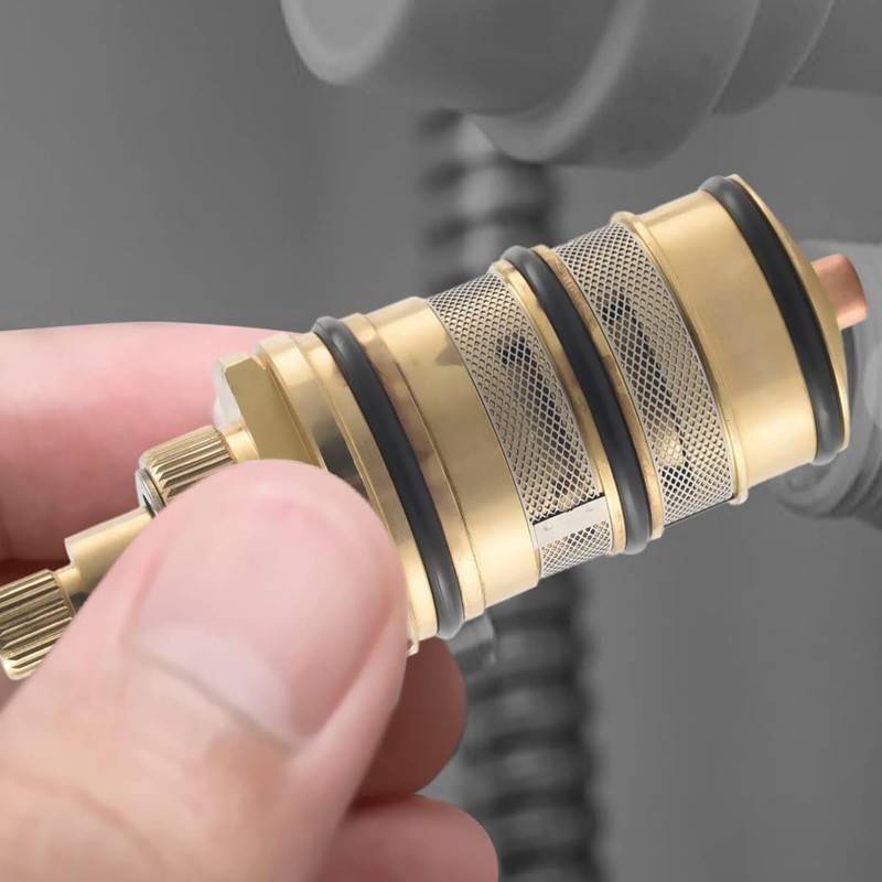 - This replacement thermostatic cartridge is constructed with a full brass body and ceramic core, offering thermal conductivity and corrosion resistance to ensure precise and stable water temperature adjustment for long-term use.