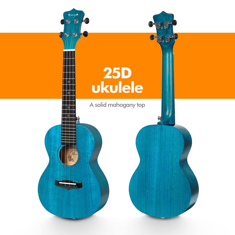 Enya Concert Ukulele 23 Inch Blue Solid Mahogany Top with Ukulele Starter Kit Includes Online Lessons, Tuner,Case, Strap, Strings, Capo, Sand Shaker, Pick,Polish Cloth (EUC-25D BU)