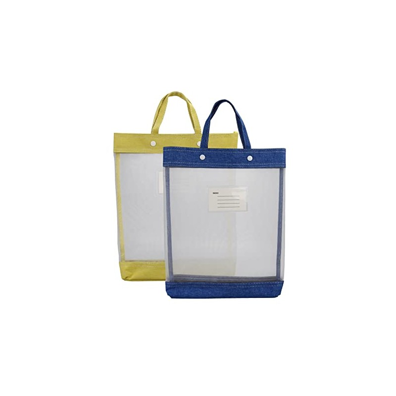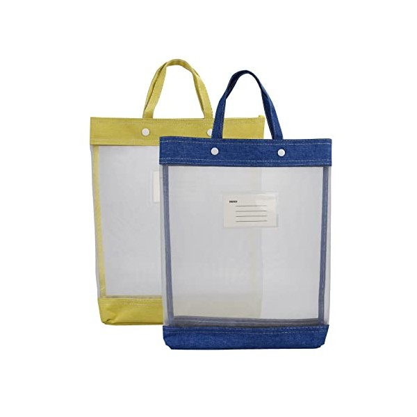 Enyuwlcm Nylon Document Bag with Handle Light Transparent Mesh File Tote Bag Pouch for Carrying Books Papers (2, BU&YL)